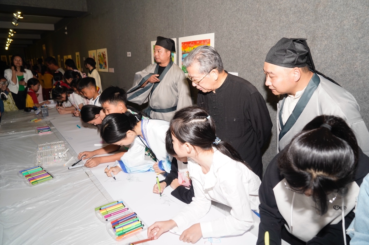 行径临了,在许钦松教会的率领下,获奖小选手们都聚一堂,共同创作以《三字经》为主题的长卷。孩子们挥毫泼墨,将对传统文化的阐发和对艺术的珍视倾注于笔端,展现出新时期少年儿童的创造力和联想力。